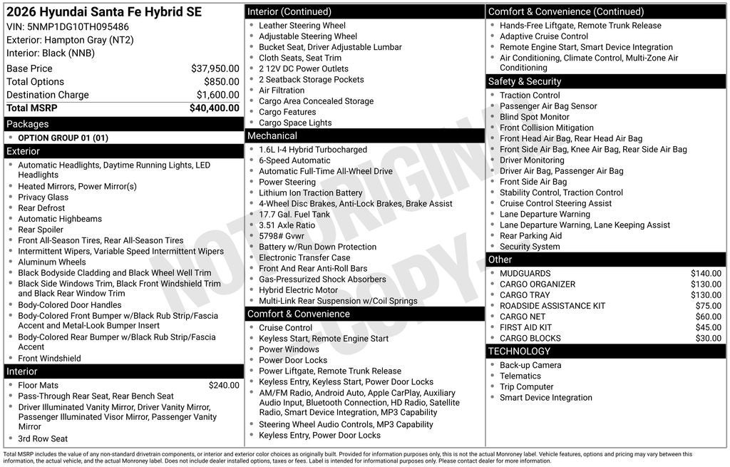 - Vehicle Name: Hyundai Santa Fe Hybrid