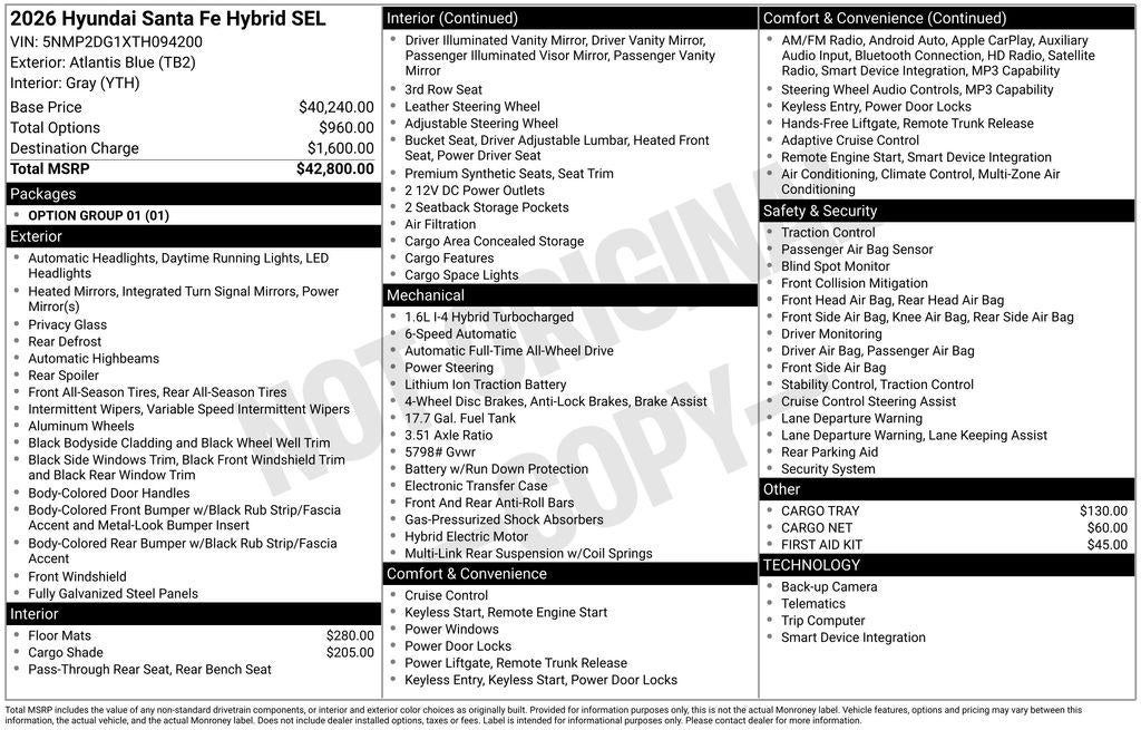 - Vehicle Name: Hyundai Santa Fe Hybrid