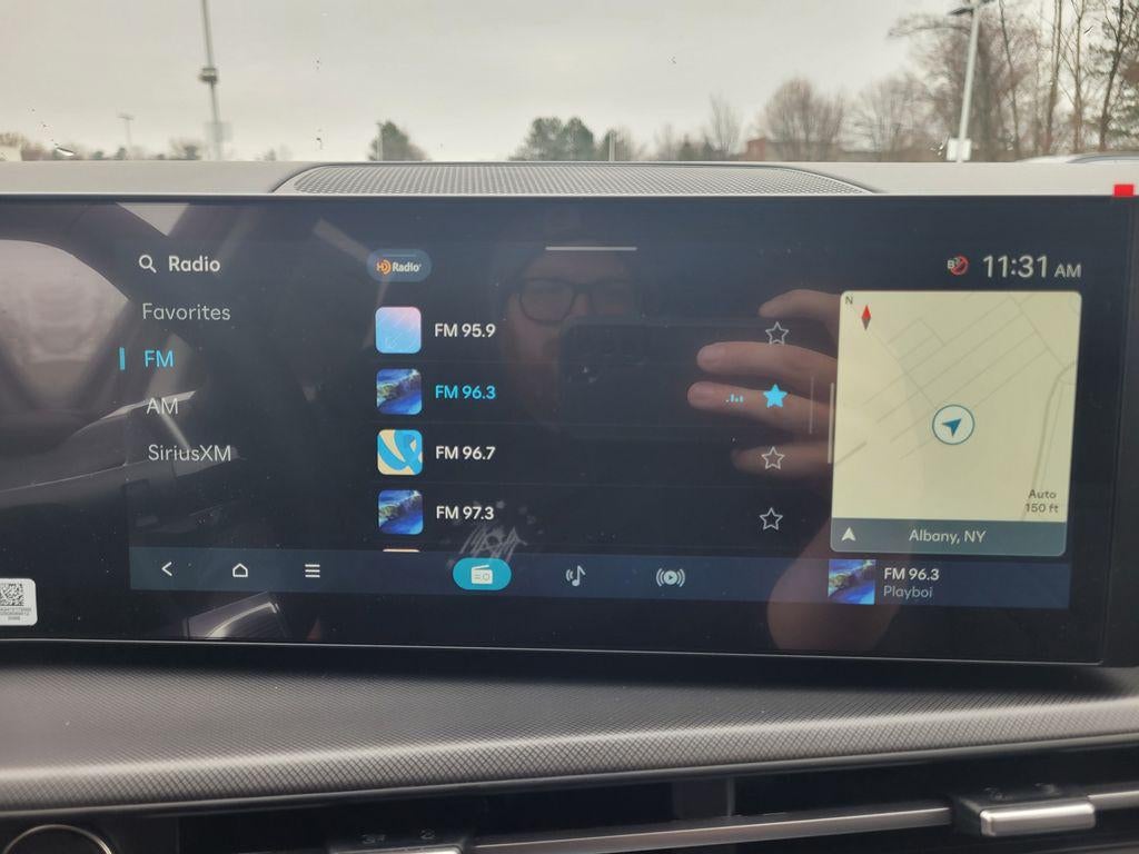 - Radio: AM/FM/HD Display Audio -inc: 6 speakers, 12.3" wide touchscreen display, Apple CarPlay, Android Auto, Bluetooth® hands-free w/wireless audio streaming, dynamic voice recognition, USB connectivity, SiriusXM, Blue Link+ connected car system, over-the-air updating capability, navigation system including traffic flow w/incident data via HD Radio (HERE) and rear seat quiet mode