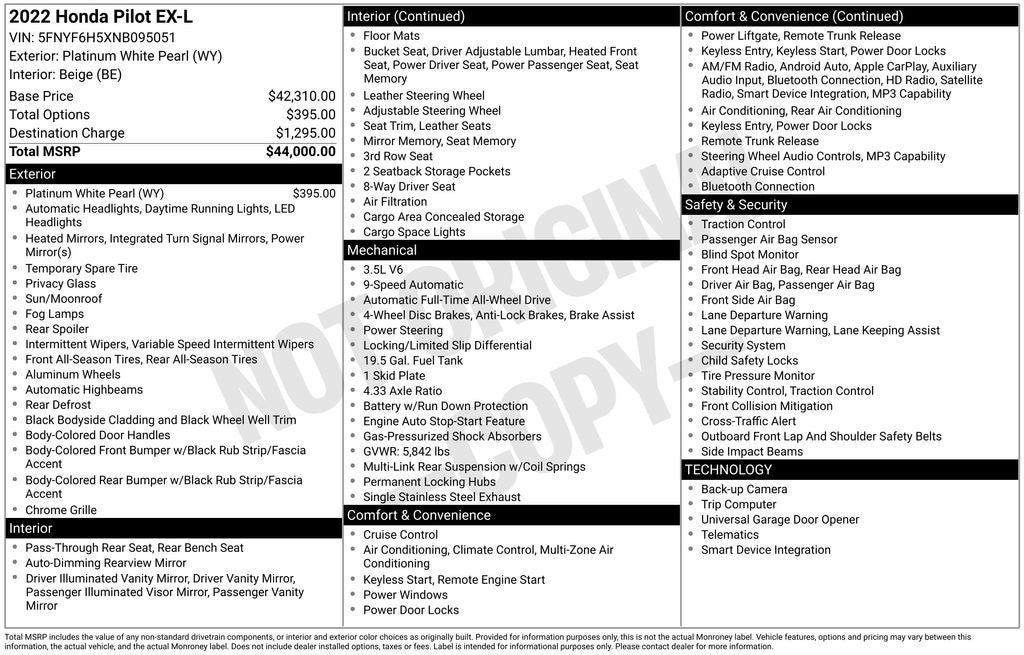- Vehicle Name: Honda Pilot