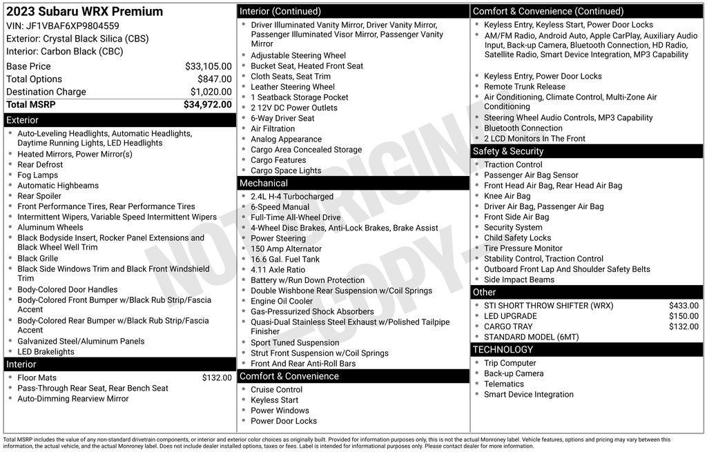 - Vehicle Name: Subaru WRX